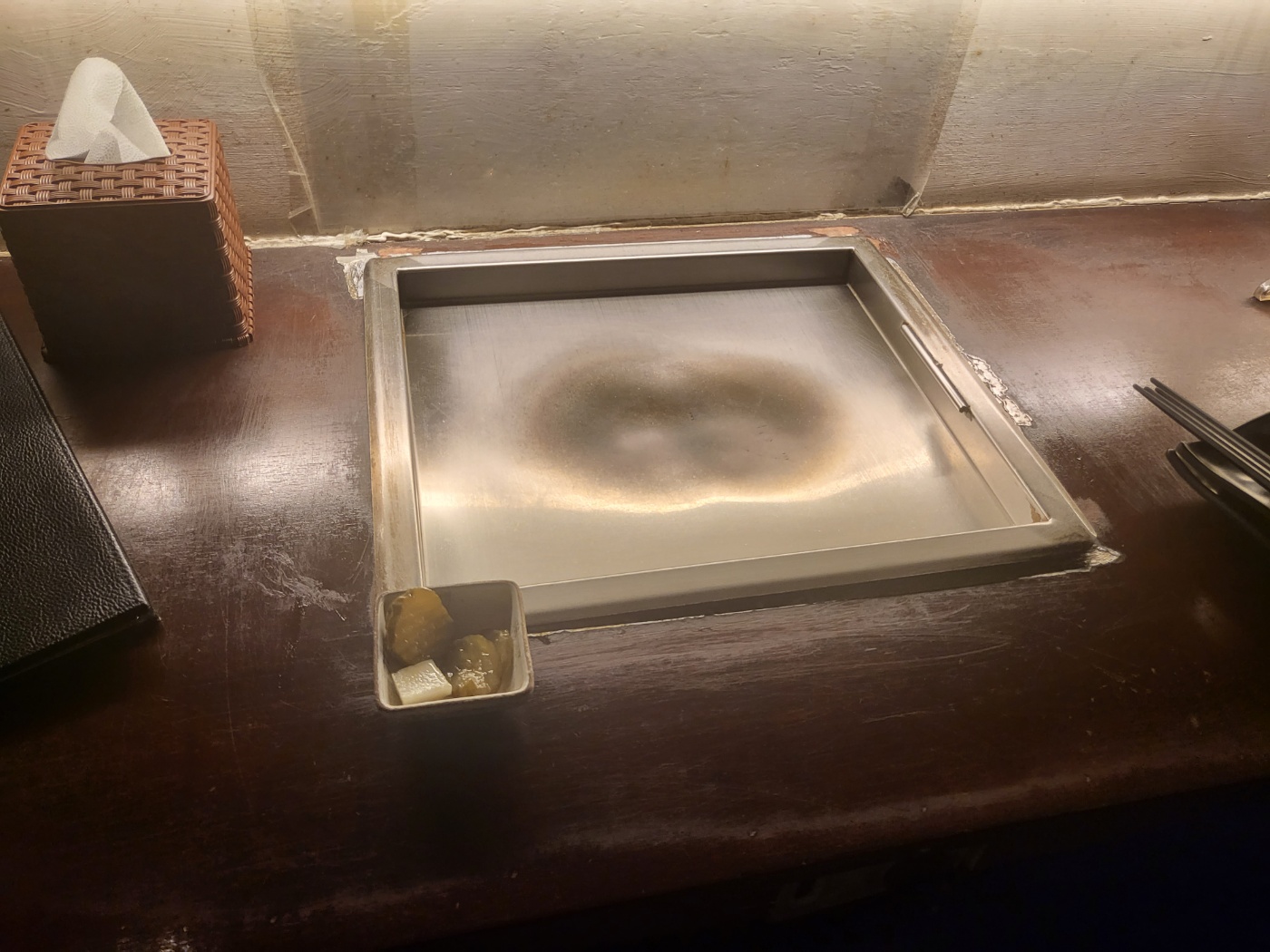 자리에 앉으면 바로 앞에 철판이 있고 피클과 앞접실를 가져다 주십니다