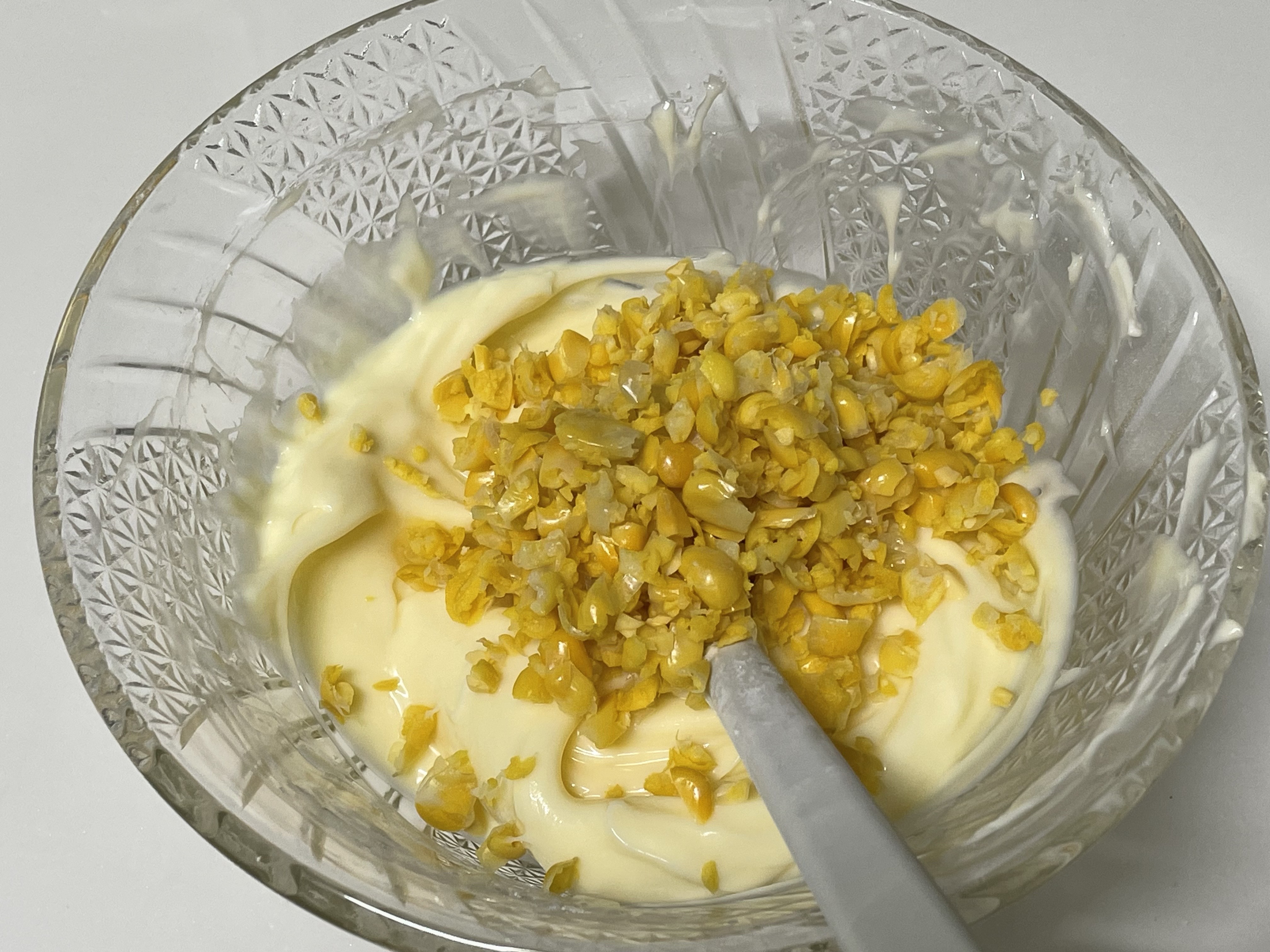 똑같이 크림치즈 슈가파우더를 섞고 자른 옥수수를 넣고 섞어 주세요~